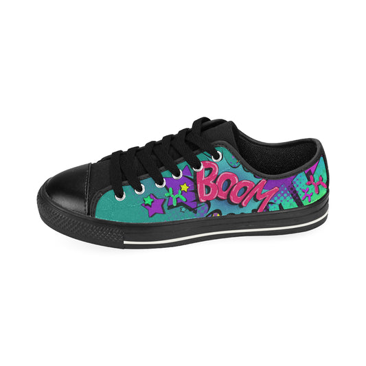Leaky Squeaky BOOM! Teal on Black - Women's Sully Canvas Shoe (SIZE 11-12)