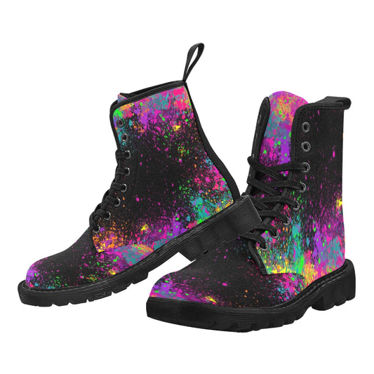 Paint Explosion on Black - Women's Ollie Combat Boots (US 6.5-12)