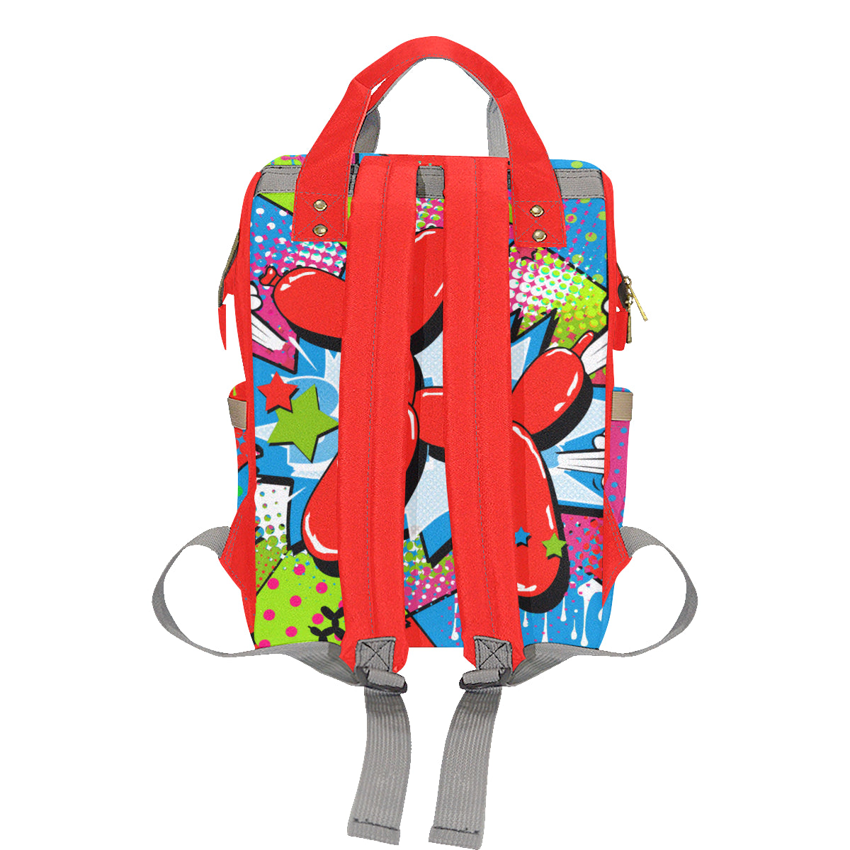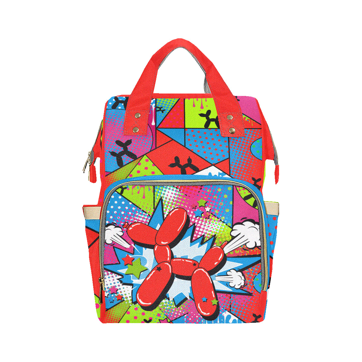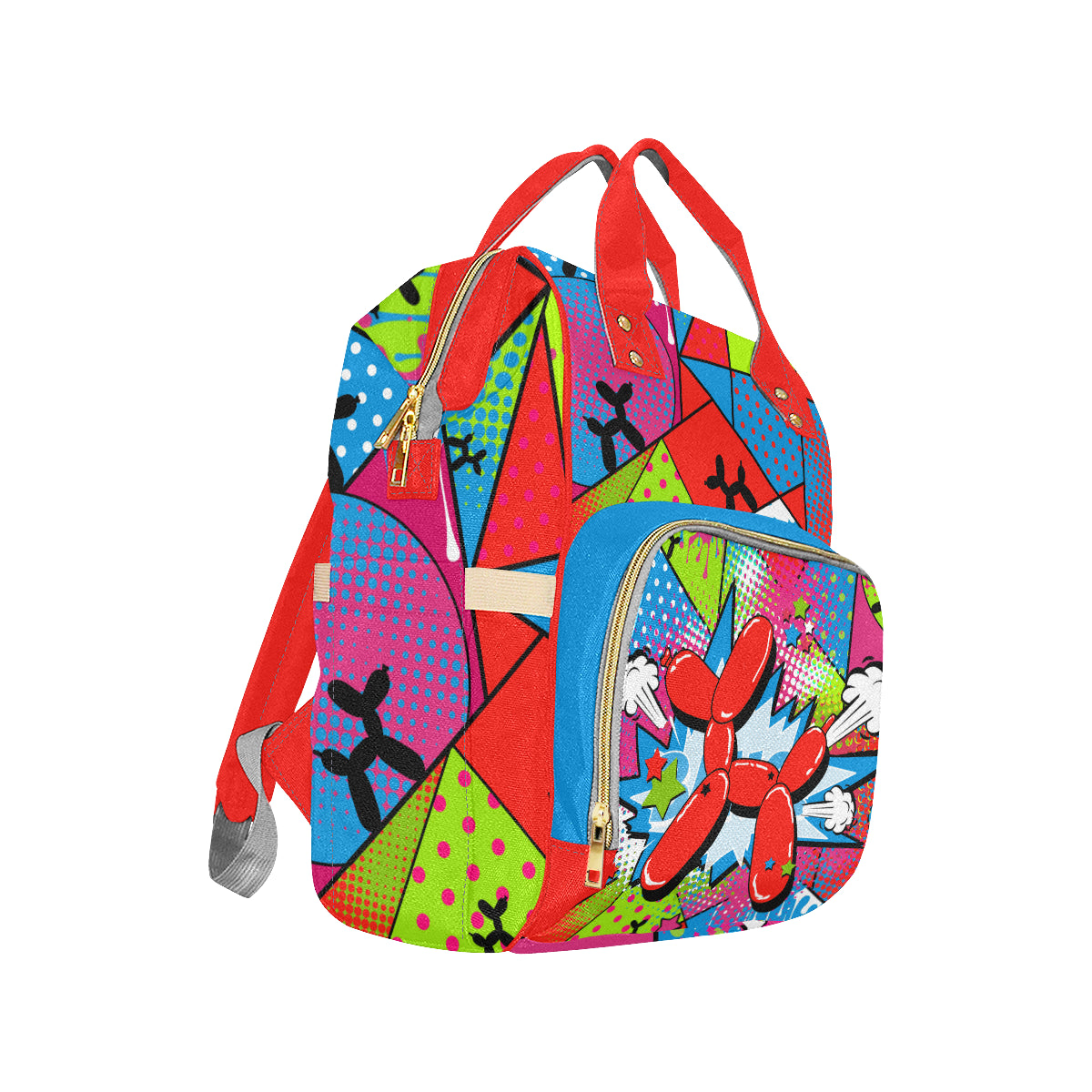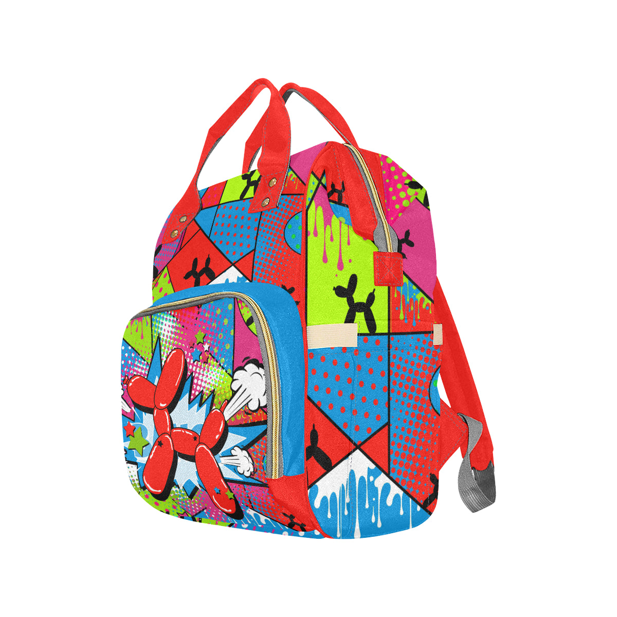 This multi functional Balloon Dog Banksy Backpack is perfect for balloon jam's, school bag, baby nappy bag, or even as a cool picnic backpack. It's so colourful you'll never misplace your backpack again.