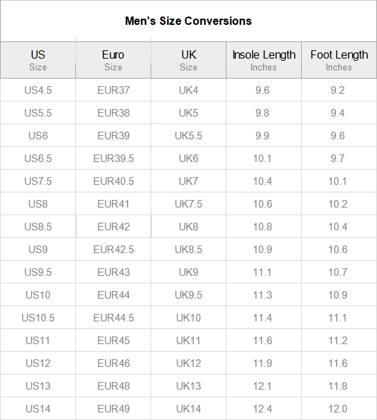 Some countries find these shoes run 1/2 a size to 1 size smaller than local sizing. Please follow instructions below to confirm your perfect size. Chart below provides the internal space measurements of the shoe from heel to toe.
