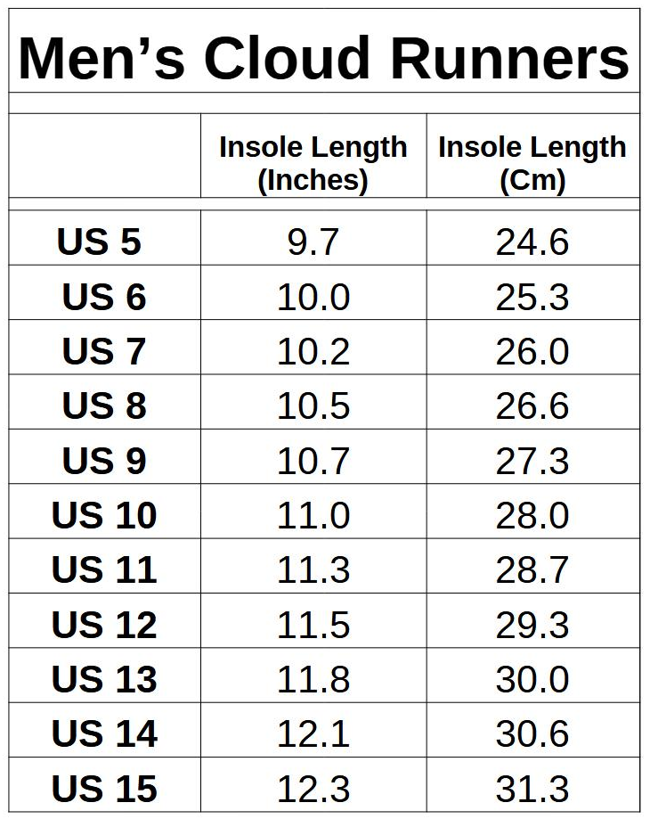 Please follow instructions below to confirm your perfect size. Chart below provides the internal space measurements of the shoe from heel to toe.