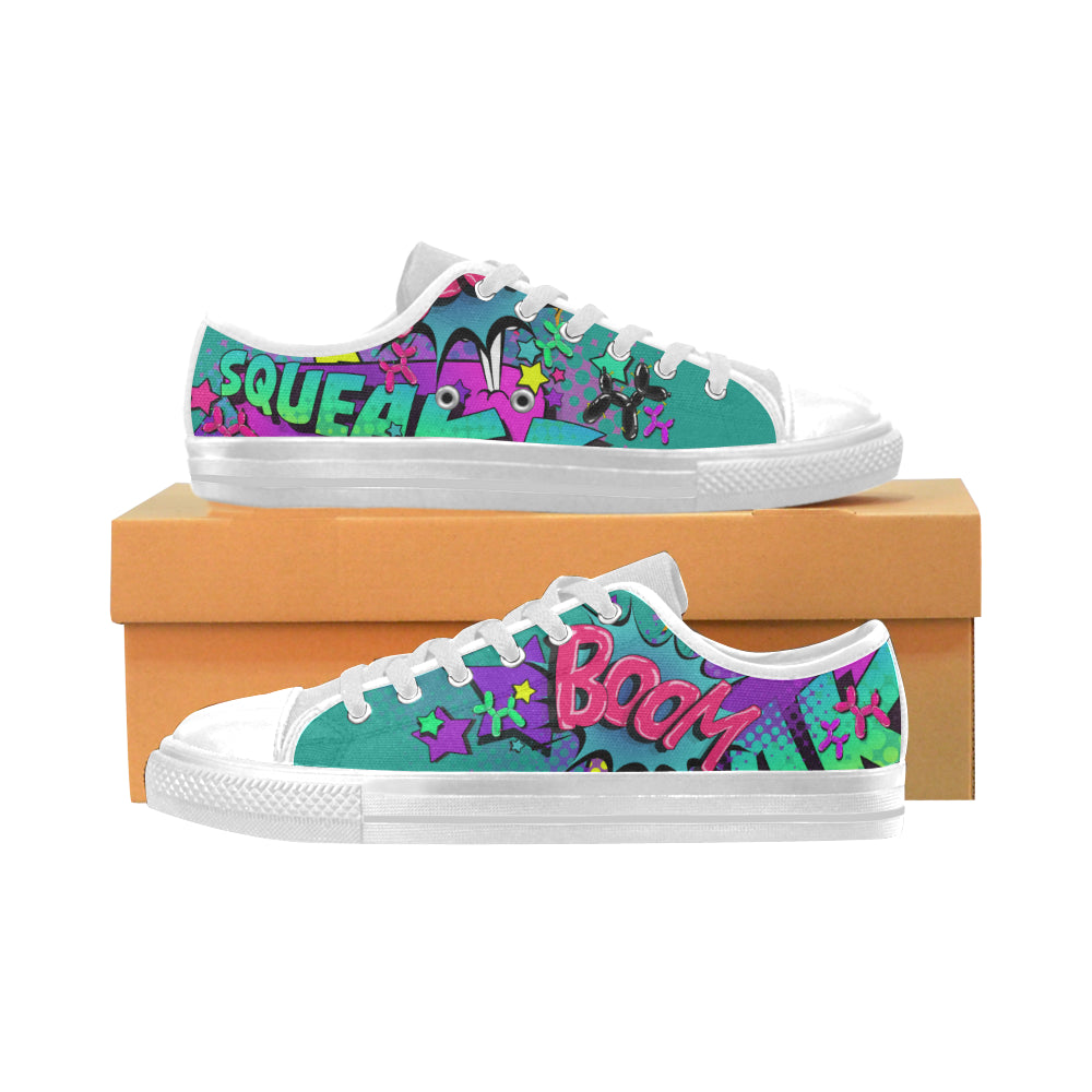 Leaky Squeaky BOOM! Teal on White - Men's Sully Canvas Shoe (SIZE 6-12)