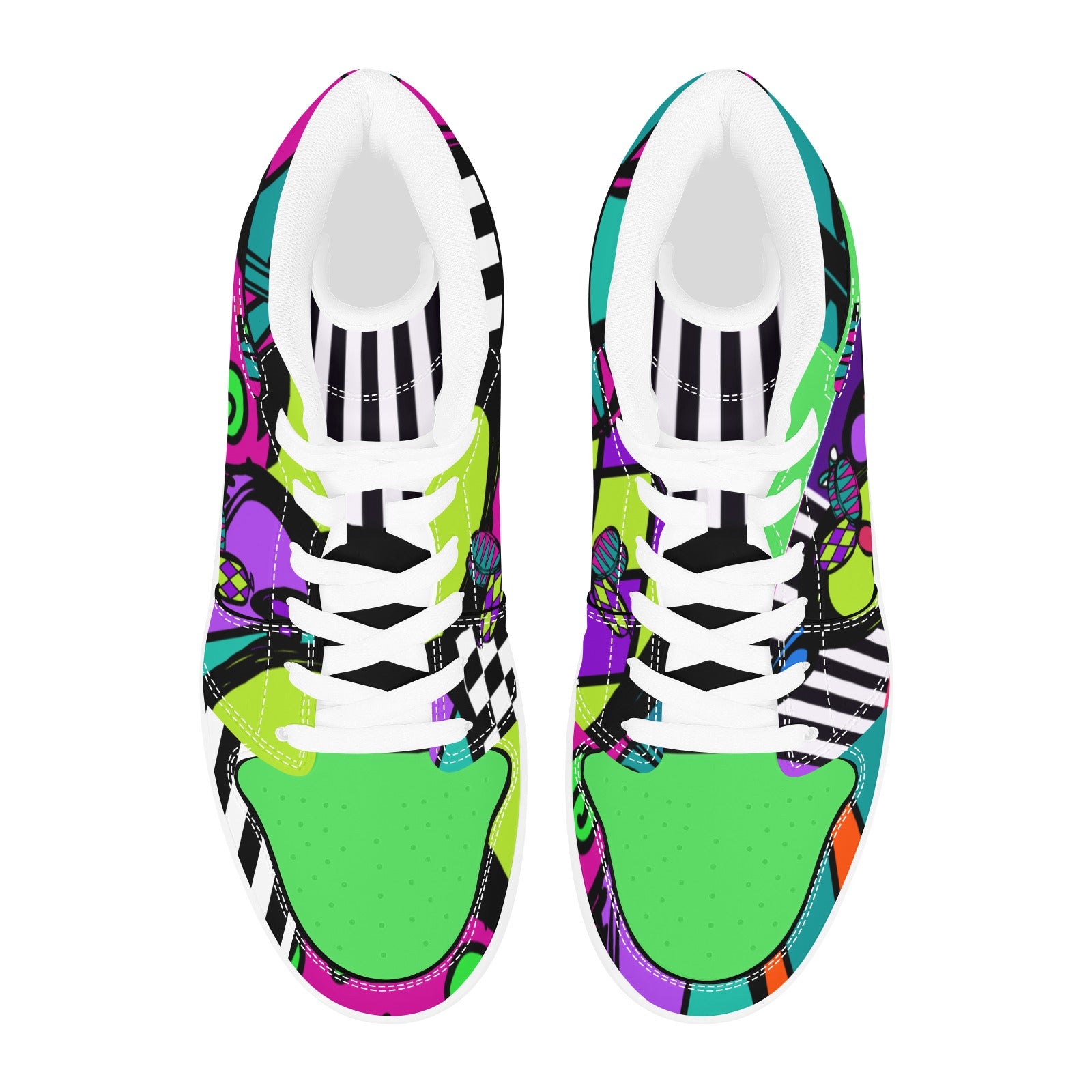 Premium Retro High Tops for Balloon artists, face painters and anyone that is missing that splash of colour in their life. Featuring bold bright graphics and epic comfort you are sure to get noticed in these stand out custom Balloon Dog Apparel High Tops.