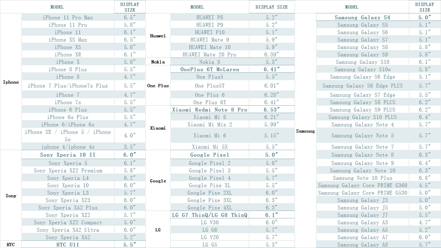 - Compatible with Phone sizes: 110mm to 150mm Long and 60mm to 80mm wide (see extensive list of phones below).